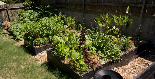 IT’S THE END OF FEBRUARY AND OF THE SUMMER OF 2010, and around two months after creating our Randwick apartment blocks’ vegetable garden it is now in full bloom and we have started to harvest from it. The foliage of the plants forms a low canopy over the mulch. Pests have been few and minor.