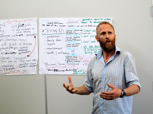Those attending represented a diversity of interests around what would start to grow into a community food movement — small food businesses, sustainability and permaculture educators, two people from local government, two from from the GMO lobby, farmers, academics, the church and social enterprise working in food distribution. Considerable advocacy skill were present in the group, with some having decades of experience in this area.